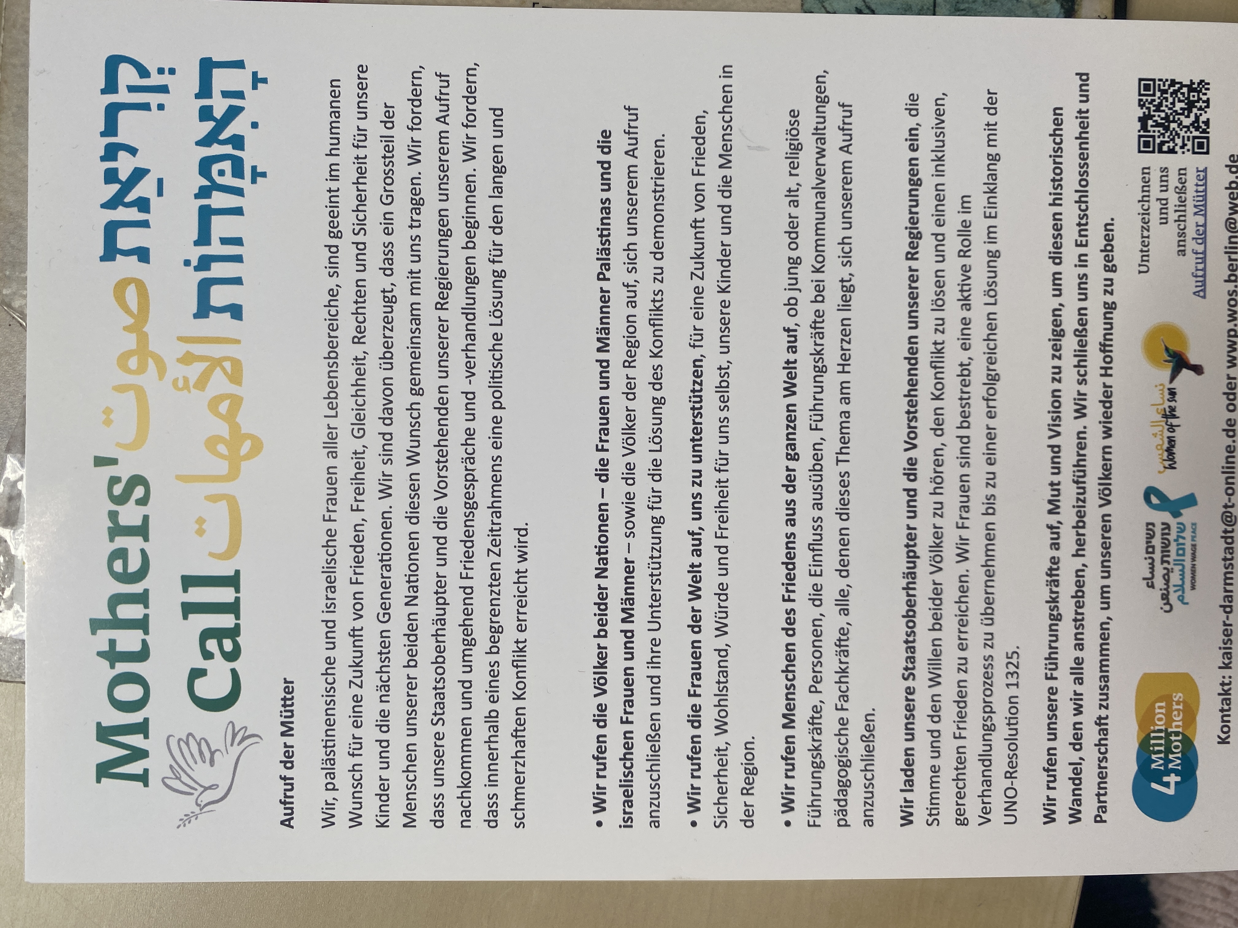 In 30 Ländern weltweit gingen zeitgleich und auch zeitversetzt Menschen barfuß, innerlich verbunden mit den Frauenorganisationen des Nahen Ostens und deren Anliegen, zusammengefasst im Aufruf der Mütter.